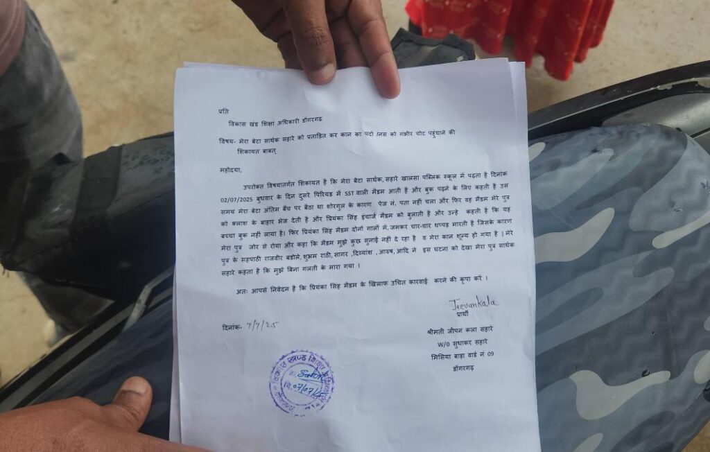 खालसा पब्लिक स्कूल, डोंगरगढ़ में पढ़ाई के दौरान एक शिक्षिका की पिटाई ने 13 वर्षीय छात्र सार्थक सहारे की ज़िंदगी हमेशा के लिए बदल दी। 2 जुलाई को SST की कक्षा में शिक्षिका प्रियंका सिंह द्वारा बात न सुन पाने पर छात्र को कई थप्पड़ मारे गए। एक जोरदार थप्पड़ इतना घातक साबित हुआ कि सार्थक की सुनने की शक्ति खत्म हो गई।