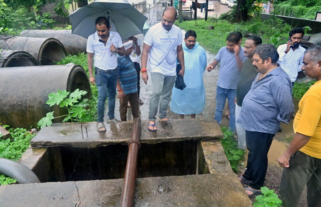 चंद्रा मौर्या अंडर ब्रिज का अवलोकन किया गया, अंडरब्रिज के बाजू सम्पवेल में 12.5 एच.पी. का मोटर पम्प लगातार संचालित है, जिसके माध्यम से पानी खाली कराया जा रहा है और सुरक्षा की दृष्टि से बैरिकेट लगाया गया है। आकाश गंगा स्थित व्यावसायिक परिसर एवं अंडरब्रिज का अवलोकन किया गया, जहां स्थिति सामान्य पाया गया। शहर के किसी भी स्थल पर जल भराव जैसी स्थिति निर्मित नहीं हुई है। नाला में कचरा एवं प्लास्टिक से अवरोध न हो, उसके लिए सुपरवाइजरों को निरंतर निगरानी हेतु निर्देशित किये। साथ ही कहीं भी जलभराव जैसी स्थिति निर्मित होती है तो तत्काल सफाई कर्मी तैनात करने एवं मशीनरी के माध्यम से स्थिति के नियंत्रण हेतु व्यवस्था बनाने स्वास्थ्य अधिकारी को निर्देशित किये। निरीक्षण के दौरान जोन स्वास्थ्य अधिकारी अनिल मिश्रा, अंकित सक्सेना, बीरेन्द्र बंजारे, स्वच्छता निरीक्षक अंजनी सिंह, चुर्णामणी यादव, किस्टोफर पाल आदि उपस्थिति रहे।