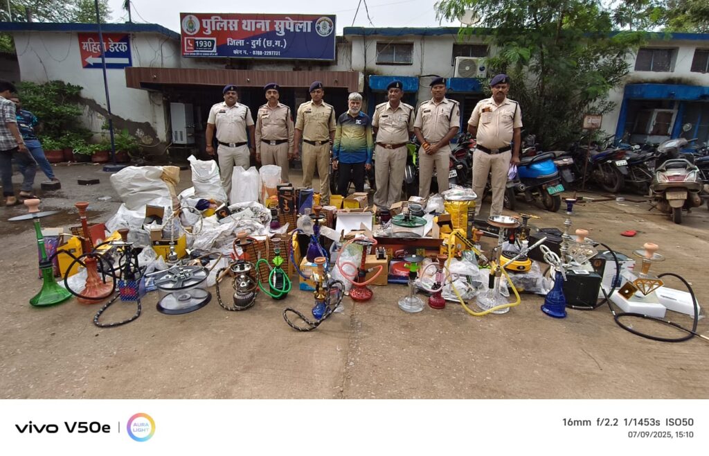 दुर्ग। दुर्ग-भिलाई शहर में पान दुकानों और डेली निड्स की दुकानों में चोरी-छिपे हुक्का पिलाने और तंबाकू युक्त नशीली सामग्री बेचने की शिकायतों को गंभीरता से लेते हुए 8 जुलाई को पुलिस द्वारा विशेष अभियान चलाया गया। लगातार मिल रही सूचनाओं को ध्यान में रखते हुए जिले के विभिन्न थाना व चौकी क्षेत्रों में कार्रवाई की गई, जिसमें सात आरोपियों के विरुद्ध कोटपा एक्ट के तहत अपराध दर्ज करते हुए बड़ी मात्रा में हुक्का सामग्री जब्त की गई।