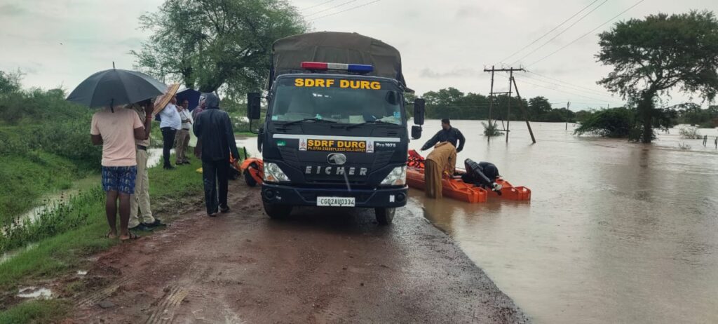 दुर्ग । दिनांक 09.07.2025 की सुबह लगभग 09:30 बजे सूचना प्राप्त हुई कि ग्राम थनौद, चौकी अंजोरा स्थित कछार नाला में अत्यधिक बारिश के कारण अचानक बाढ़ आ गई, जिससे भारतमाला हाईवे प्रोजेक्ट में कार्यरत लगभग 20-25 मजदूर नाला के उस पार फंस गए हैं।