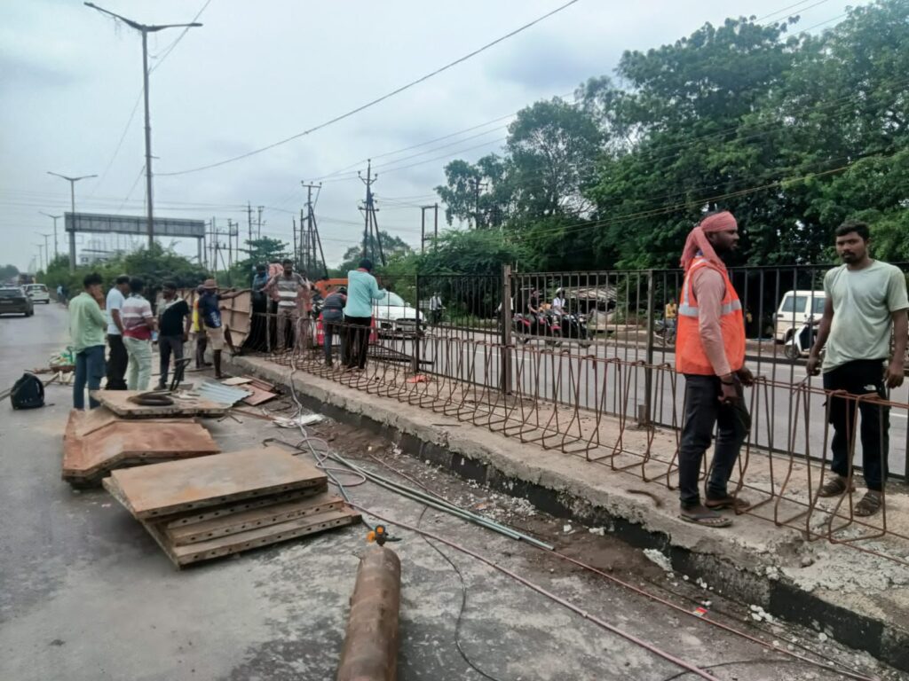 ▫️ नेशनल हाईवे एवं सर्विस रोड के मध्य डेलीनेटर लगाने और ओवरब्रिज के आगे कंक्रीट डिवाइडर निर्माण का कार्य जारी है।