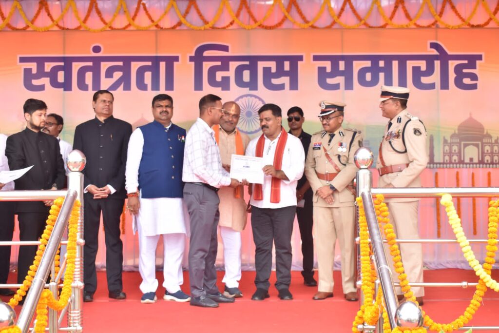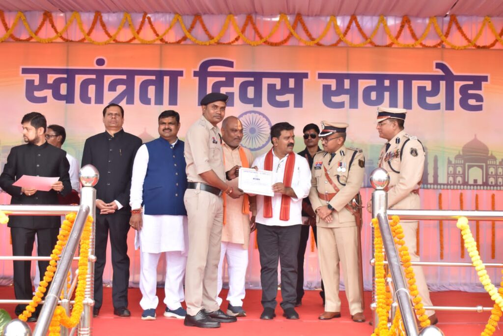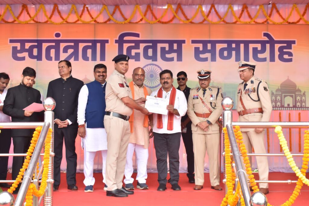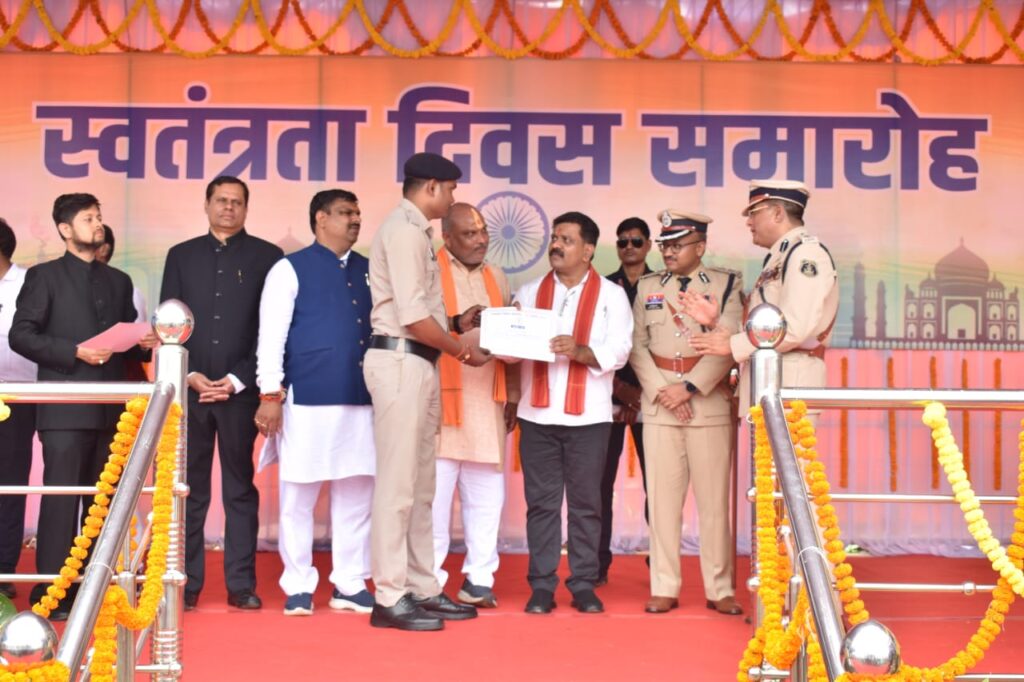 दुर्ग। 15 अगस्त स्वतंत्रता दिवस 2025 के अवसर पर प्रथम वाहिनी, छसबल, भिलाई में आयोजित कार्यक्रम में गृह मंत्री विजय शर्मा ने परेड की सलामी ली और सांस्कृतिक कार्यक्रमों के बाद दुर्ग जिले में पदस्थ 13 पुलिस अधिकारियों एवं कर्मचारियों को प्रशस्ति पत्र देकर सम्मानित किया।