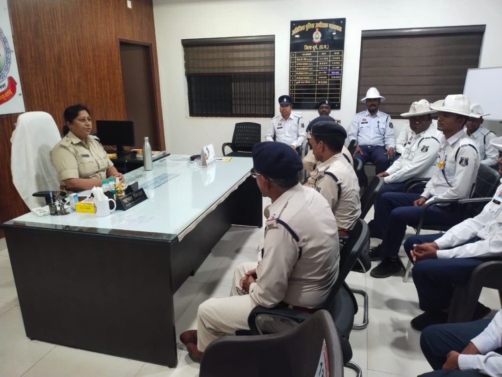 दुर्ग । दिनांक 25 अगस्त 2025 को नेहरू नगर, दुर्ग स्थित यातायात कार्यालय में यातायात पुलिस की बैठक आयोजित की गई। बैठक में महोत्सव के दौरान यातायात प्रबंधन, मार्ग विचलन योजना, भीड़ नियंत्रण व्यवस्था तथा पार्किंग प्रबंधन पर विस्तृत विचार-विमर्श किया गया। उपस्थित अधिकारियों को आवश्यक दिशा-निर्देश प्रदान किए गए, ताकि त्योहार अवधि में आमजन की सुरक्षा एवं यातायात की सुगमता सुनिश्चित की जा सके।