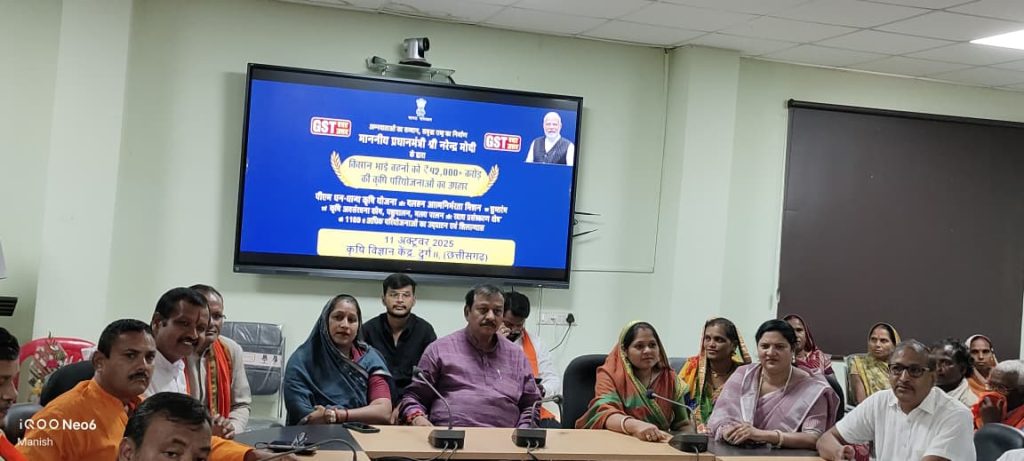 दुर्ग, । प्रधानमंत्री श्री नरेन्द्र मोदी जी द्वारा आज पी.एम. धन धान्य कृषि योजना, पल्सेस मिशन एवं अन्य योजना दलहन व तिलहन सहित 1100 अन्य परियोजनाओं का एन.ए.एस.सी. कॉम्प्लेक्स, पूसा, नई दिल्ली से शुभारंभ किया गया। जिसका सीधा प्रसारण कृषि विज्ञान केन्द्र, पाहंदा (अ), दुर्ग में किया गया। कार्यक्रम के प्रारंभ में केन्द्र के वरिष्ठ वैज्ञानिक एवं प्रमुख डॉ. विजय जैन ने स्वागतीय उद्बोधन में इस कार्यक्रम का किसानों के लिये होने वाली उपयोगिता की जानकारी प्रदान की।