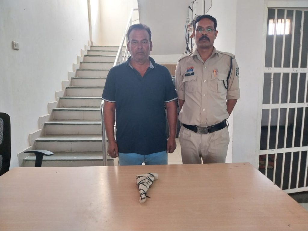 एएसपी सुखनंदन राठौर ने बताया कि शनिवार को मुखबीर से सूचना मिली कि मां शारदा ट्रेडर्स जवाहर नगर के पास एक व्यक्ति देशी कट्टा रखा हुआ है और आम लोगों को कट्टा दिखाकर डरा धमका रहा है। सूचना पर प्रकरण की गंभीरता को देखते हुए पुलिस टीम मौके पर पहुंचकर मुखबीर के बताये हुलिया वाले व्यक्ति को घेराबंदी कर पकड़ा गया। पूछताछ करने पर अपना नाम नाम सूबेदार सिंह यादव (52 वर्ष) निवासी कैलाश नगर थाना जामुल का निवासी बताया। आरोपी के कब्जे से एक नग देशी कट्टा एवं 02 नग जिंदा कारतूस बरामद किया गया।
