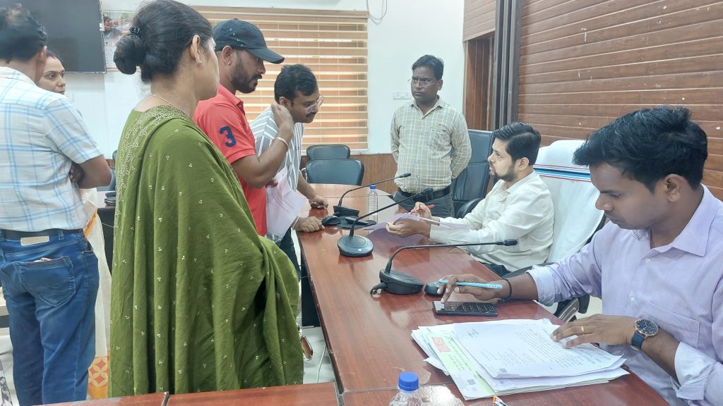 दुर्ग, । जिला कार्यालय के सभाकक्ष में कलेक्टर श्री अभिजीत सिंह ने जनदर्शन कार्यक्रम में पहुंचे जनसामान्य लोगों से मुलाकात कर उनकी समस्याएं सुनी। उन्होंने जनदर्शन में पहुंचे सभी लोगों की समस्याओं को गंभीरता से सुना और समुचित समाधान एवं निराकरण करने संबंधित विभागों को शीघ्र कार्यवाही कर आवश्यक पहल करने को कहा। जनदर्शन कार्यक्रम में डिप्टी कलेक्टर श्री उत्तम ध्रुव भी उपस्थित थे। जनदर्शन में अवैध कब्जा, आवासीय पट्टा, प्रधानमंत्री आवास, भूमि सीमांकन कराने, सीसी रोड निर्माण, ऋण पुस्तिका सुधार, आर्थिक सहायता राशि दिलाने सहित विभिन्न मांगों एवं समस्याओं से संबंधित आज 112 आवेदन प्राप्त हुए।