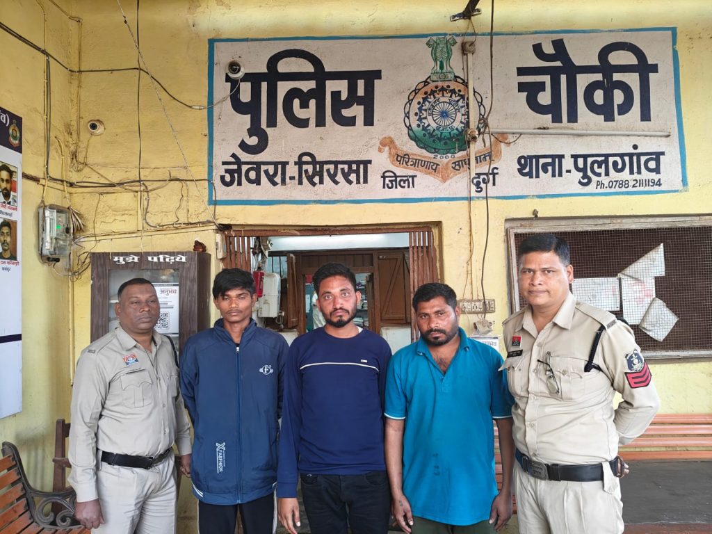विवेचना दौरान ग्राम करंजा भिलाई के संदेही दुर्गेश पटेल उर्फ पिंटू, गोवर्धन पटेल और डिकेश पटेल को घेराबंदी कर हिरासत में लिया गया। पूछताछ में तीनों ने अपराध करना स्वीकार किया। उन्होंने बताया कि लूटे गए 5,000 रुपये खर्च कर दिए और मोबाइल फोन तालाब में फेंक दिया।
