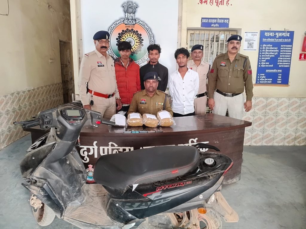 दुर्ग। दुर्ग जिले में ऑपरेशन विश्वास के तहत नशे के विरुद्ध लगातार कार्रवाई की जा रही है। इसी क्रम में 21.11.2025 को मुखबिर से सूचना मिली कि अभिनंदन पैलेस के पीछे दो व्यक्ति खड़े हैं, जिन्हें एक काली बिना नंबर की स्कूटी में दो युवक गांजा से भरा थैला देकर नदी रोड की ओर डिलीवरी कराने जा रहे हैं।