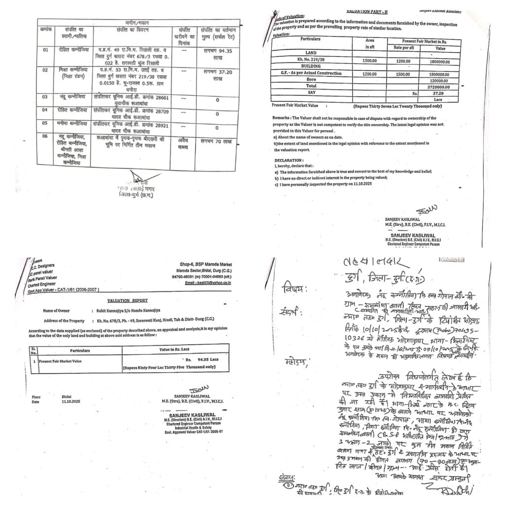 - रूआबांधा में बीएसपी की भूमि पर निर्मित मकान एवं दुकान — लगभग 70 लाख रुपये