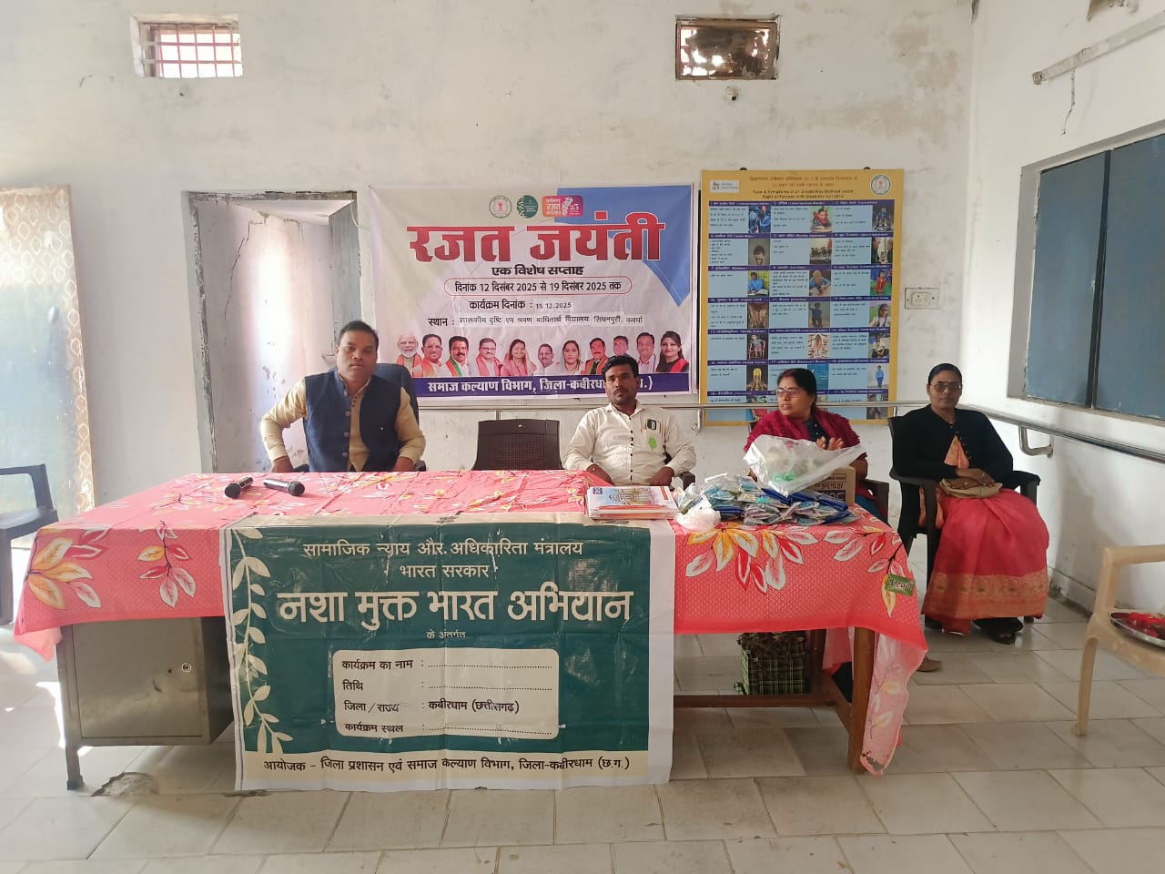 कार्यक्रम में 05 श्रवण बाधित बच्चों को श्रवण-यंत्र भी वितरित किए गए, जिससे उन्हें सुनने एवं सीखने में सहायता मिल सके। कार्यक्रम के अंत में उपस्थित समस्त विद्यार्थियों, जनप्रतिनिधियों, अधिकारी एवं कर्मचारियों को नशे के दुष्परिणामों की जानकारी देते हुए नशामुक्ति की शपथ दिलाई गई। कार्यक्रम में देवकुमार कौशिक, अधीक्षक, शासकीय दृष्टि एवं श्रवण बाधितार्थ विद्यालय, सिंघनपुरी, कवर्धा, श्रीमती लक्ष्मी चंद्रा, प्र. शिक्षक, श्रीमती जागेश्वरी चंद्र, प्र. शिक्षक, राजू महोबिया, प्र. शिक्षक सहित विद्यालय के अन्य शिक्षक एवं कर्मचारीगण तथा समाज कल्याण विभाग के अधिकारी एवं कर्मचारी उपस्थित थे।