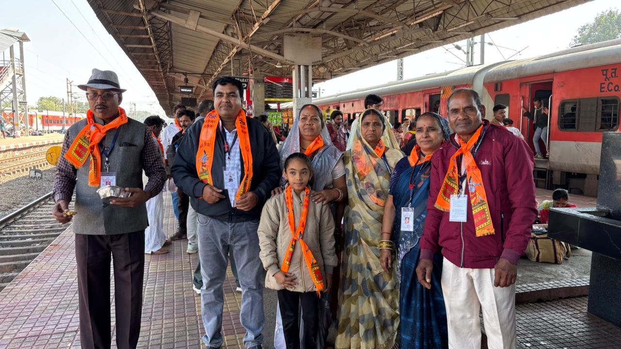 दुर्ग, / ‘श्री रामलला दर्शन (अयोध्या धाम) योजना’ के तहत आज दुर्ग जिले से रामभक्तों का एक बड़ा जत्था स्पेशल ट्रेन से अयोध्या के लिए रवाना हुआ। जय श्री राम नारों से गूंजता दुर्ग रेलवे स्टेशन से 185 श्रद्धालुओं को ट्रेन के माध्यम से रवाना किया गया। दुर्ग रेलवे स्टेशन से श्रद्धालुओं से भरी स्पेशल ट्रेन को छत्तीसगढ़ राज्य ग्रामीण एवं अन्य पिछड़ा वर्ग आयोग विकास प्राधिकरण के उपाध्यक्ष व विधायक श्री ललित चंद्राकर, कलेक्टर श्री अभिजीत सिंह, जिला पंचायत अध्यक्ष श्रीमती सरस्वती बंजारे ने श्रद्धालुओं से भरी ट्रेन को हरी झंडी दिखाकर रवाना किया। रवाना होते समय श्रद्धालुओं को जनसम्पर्क विभाग द्वारा प्रकाशित मासिक पत्रिका ‘छत्तीसगढ़ जनमन’ की प्रतियां भी भेंट की गईं। इस अवसर पर स्थानीय जनप्रतिनिधि व रेलवे विभाग के अन्य अधिकारीगण उपस्थित रहे।