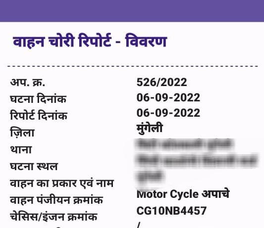 तलाशी अभियान के दौरान बरामद की गई दो मोटरसाइकिलों में से एक थाना दुर्ग क्षेत्र से चोरी की गई थी, जबकि दूसरी मोटरसाइकिल जिला मुंगेली के सिटी कोतवाली थाना क्षेत्र से चोरी होना पाया गया। दोनों वाहनों को जब्त कर संबंधित थानों को सूचना दी गई है।