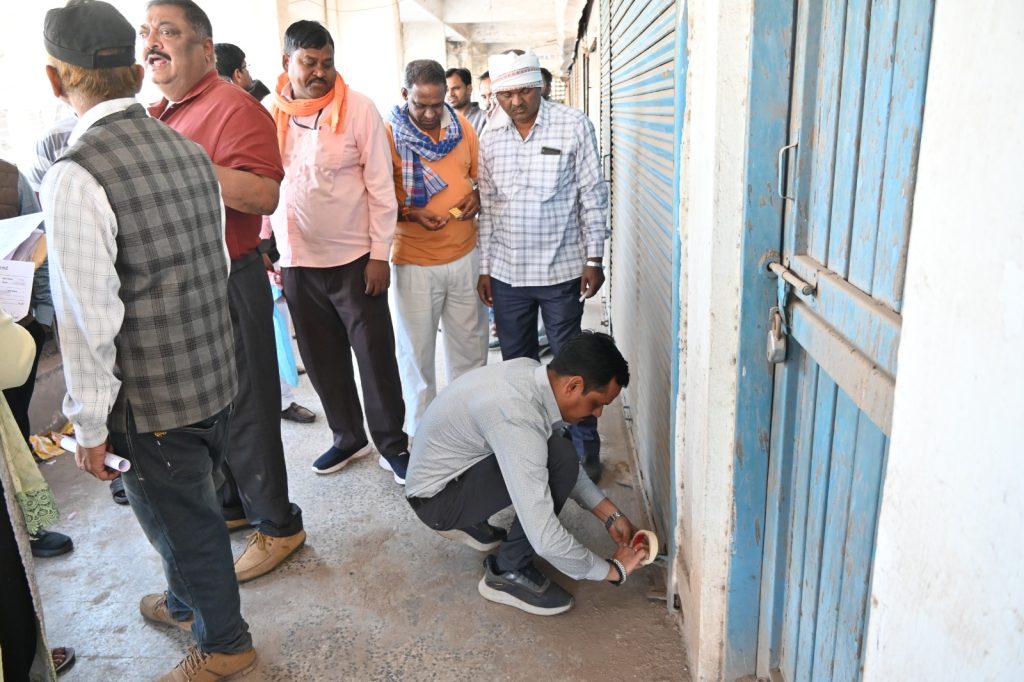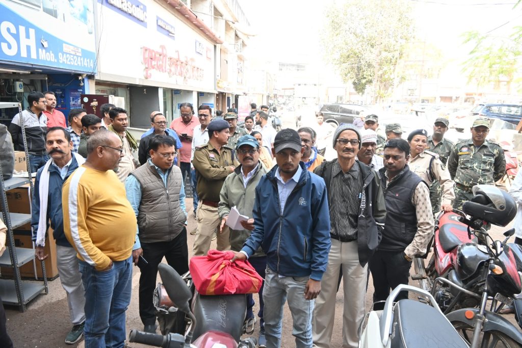 आयुक्त राजीव कुमार पाण्डेय के निर्देश पर निगम उपायुक्त डी के कोसरिया, जोन 1 के राजस्व विभाग एवं पुलिस प्रशासन की संयुक्त टीम द्वारा 9 दुकानों को सीलबंद करने की कार्यवाही की गई। कार्यवाही के दौरान राजस्व अधिकारी जे.पी.तिवारी, बेदखली प्रभारी विनय शर्मा, अनुरेखक उन्मेश साहू, सहायक राजस्व अधिकारी सुनील जोशी, प्रसन्न तिवारी, बसंत देवांगन, बेदखली सहायक प्रभारी हरिओम गुप्ता, बेदखली टीम के कर्मचारी सहित अन्य कर्मचारीगण उपस्थित रहे।