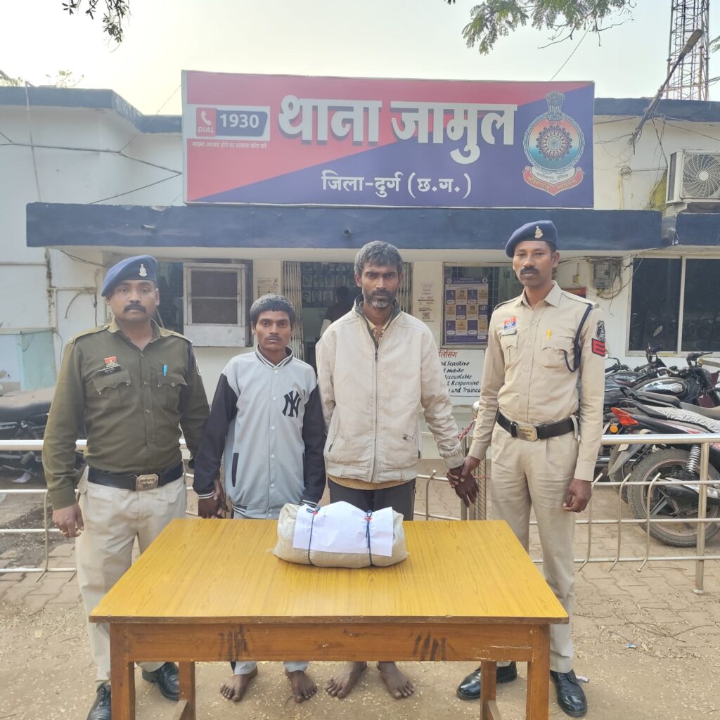 जिला दुर्ग के थाना जामुल पुलिस ने नशे के खिलाफ प्रभावी कार्रवाई करते हुए गांजा तस्करी में संलिप्त दो आरोपियों को गिरफ्तार किया है। आरोपियों को तिरंगा चौक, छावनी के पास गांजा बिक्री करते हुए रंगे हाथ पकड़ा गया।