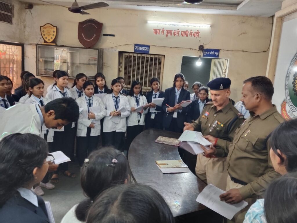 भ्रमण के दौरान विद्यार्थियों को घटना स्थल पर पुलिस द्वारा की जाने वाली जांच, साक्ष्य एकत्र करने की प्रक्रिया और उनके संरक्षण के तरीकों से भी अवगत कराया गया। इसके साथ ही उन्हें थाना परिसर के बंदीगृह, विवेचक कक्ष, मालखाना एवं थाना प्रभारी कक्ष का अवलोकन कराया गया, जिससे उन्हें पुलिस की कार्यप्रणाली को नजदीक से समझने का अवसर मिला।