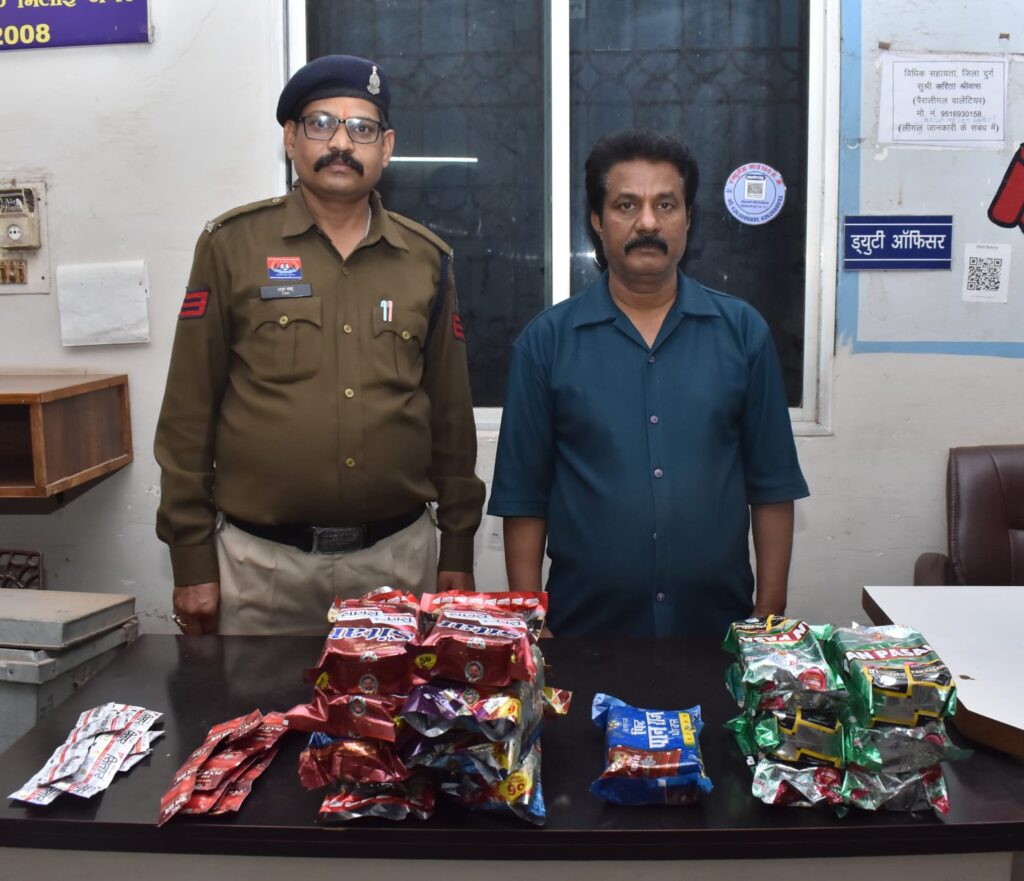 युवाओं को नशे की गिरफ्त से बाहर निकालने और शहर में बढ़ते नशे के प्रचलन पर रोक लगाने के उद्देश्य से दुर्ग पुलिस ने बड़ी और समन्वित कार्रवाई की है। पुलिस अधीक्षक के निर्देश पर चलाए गए विशेष अभियान के तहत शहर के विभिन्न क्षेत्रों में एक साथ 35 से अधिक पुलिस टीमों ने रेड कार्रवाई करते हुए ‘गोगो/रोलिंग पेपर’, हुक्का फ्लेवर, चिलम एवं प्रतिबंधित जर्दायुक्त पान मसाला बेचने वाले अवैध नेटवर्क का भंडाफोड़ किया है।