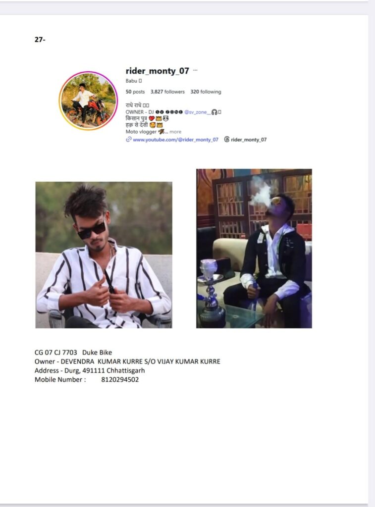 दुर्ग, होली पर्व को ध्यान में रखते हुए दुर्ग पुलिस ने जिलेभर में विशेष अभियान चलाकर सोशल मीडिया पर अवैध धारदार हथियार प्रदर्शित करने वालों के खिलाफ सख्त कार्रवाई की है। अभियान के दौरान ऑनलाइन प्लेटफॉर्म से हथियार मंगाने और उनके साथ फोटो पोस्ट करने वाले कुल 27 व्यक्तियों की पहचान कर वैधानिक कार्यवाही की गई।