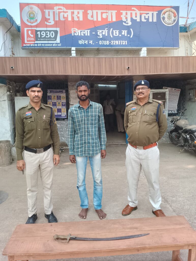 दुर्ग। होली पर्व के मद्देनजर कानून व्यवस्था बनाए रखने के लिए सुपेला पुलिस लगातार कार्रवाई कर रही है। इसी कड़ी में लक्ष्मी नगर क्षेत्र में तलवार लहराकर लोगों को डराने वाले एक आरोपी को पुलिस ने गिरफ्तार किया है।