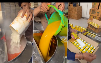 डेस्क बोर्ड । सोशल मीडिया पर वायरल हुए एक वीडियो ने लोगों को चौंका दिया है, जिसमें दावा किया गया है कि टेट्रा पैक आम का जूस असली आम से नहीं बनाया जाता है। वीडियो में दिखाया गया है कि जूस-प्रोसेसिंग प्लांट में पीले रंग के तरल को लाल और नारंगी खाद्य रंग, चीनी की चाशनी और अन्य रसायनों के साथ मिलाया जाता है और एक मशीन में मथ दिया जाता है।