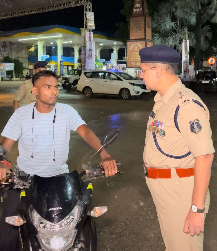 सत्येन्द्र बडघरे कवर्धा – कबीरधाम जिले के पुलिस अधीक्षक डॉ. अभिषेक पल्लव ने सड़क पर उतरकर देर रात घूमने वाले लोगों और शराब पीकर वाहन चलाने वालों की क्लास लगाई डा. पल्लव ने शहर के सिग्नल चौक में रात घूमने वाले लोगों और शराब पीकर वाहन चलाने वालों की गई जाँच, 30 प्रकरण दर्ज किए।