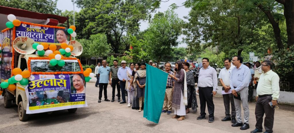 दुर्ग । कलेक्टर ऋचा प्रकाश चौधरी ने आज कलेक्टोरेट परिसर से उल्लास नवभारत साक्षरता रथ को हरी झण्डी दिखाकर रवाना किया। इस रथ के माध्यम से जन-जन तक उल्लास नवभारत साक्षरता का यह संदेश पहुंचाया जाएगा ताकि जिले के 15 वर्ष से अधिक आयु वर्ग के सभी असाक्षर लोगों को बुनियादी साक्षरता एवं संख्या ज्ञान कराकर डिजिटल युग के लिए तैयार कर शिक्षा के प्रति जागरूक किया जाएगा। उल्लेखनीय है कि अंतर्राष्ट्रीय साक्षरता दिवस 08 सितम्बर 2024 के उपलक्ष्य में जिले में 01 सितम्बर से 08 सितम्बर 2024 तक अंतर्राष्ट्रीय साक्षरता सप्ताह दिवस का आयोजन किया जा रहा है। इस दौरान उल्लास नवभारत कार्यक्रम अंतर्गत असाक्षर लोगों को शिक्षा के प्रति जागरूक किया जा रहा है। इस अवसर अपर कलेक्टर अरविंद एक्का, जिला शिक्षा अधिकारी अरविंद मिश्रा, कार्यक्रम की जिला नोडल अधिकारी डॉ. पुष्पा पुरुषोत्तम, सहायक संचालक अमित घोष एवं अन्य जिला स्तरीय अधिकारी उपस्थित थे।