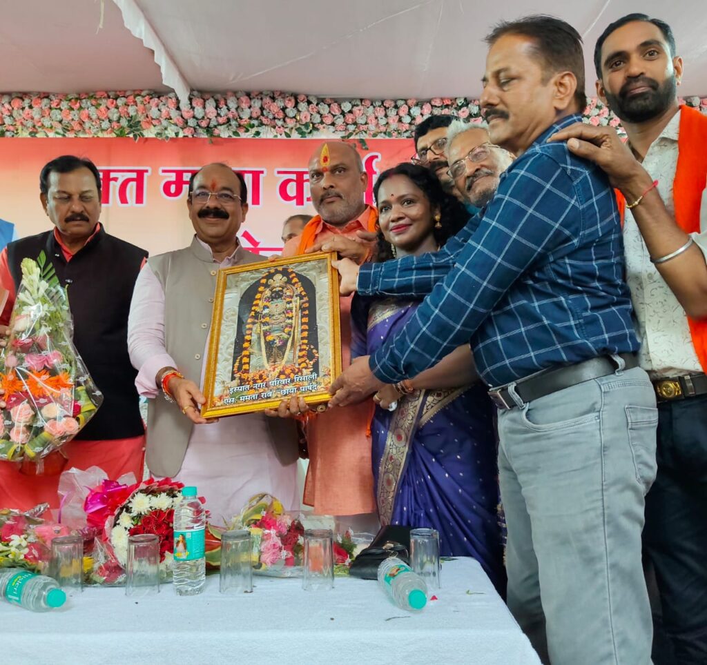 भिलाई । इस्पात नगर विकास कल्याण समिति द्वारा आज दिनांक 8/9/24 दिन रविवार को प्रदेश के लोकप्रिय उप मुख्यमंत्री श्री अरुण साव जी द्वारा इस्पात नगर के भक्त माता कर्मा मां के मूर्ति के अनावरण समारोह में शामिल हुवे और रिसाली के विभिन्न विकास कल्याण कार्य हेतु 14 करोड़ की सौगात प्रदान किया इस अवसर पर इस्पात नगर विकास कल्याण समिति द्वारा श्री राम लला की प्रतिमा माननीय उप मुख्यमंत्री जी को भेट किया इस दौरान सांसद श्री विजय बघेल,दुर्ग ग्रामीण विधायक श्री ललित चंद्राकर , सांसद प्रतिनिधि पप्पू दीपक चंद्राकर, उपस्थित थे प्रतिमा भेट करने वाले मे छाया पार्षद ममता राव, पूर्व जिला बीजेपी मंत्री रमेश शर्मा, राकेश शुक्ला, राजेंद्र सिंह, नंदकिशोर सिंह, धनजय चतुर्वेदी, भानो जी राव, कल्पना स्वामी, छाया बाग, सरोज गोंडालिया, प्रेम लता गोटिया, संध्या मंडलोई, गीता मिश्रा, जसपाल सिंह, तरसेम कौर, कंचन सिंह, देव कुमार देशमुख, अमर शितोले, इरफान सोधकी, महेश्वर सिंह, सचिन गोस्वामी, ममता साहू, कल्पना बोस, जी सुकन्या, सरला सिंह, सरोज दुबे, प्रदीप सिंह, अनिल ठाकुर ने माननीय श्री अरूण साव जी को पुष्पहार पहनाकर स्वागत किया और श्री राम लला जी की प्रतिमा भेट किया