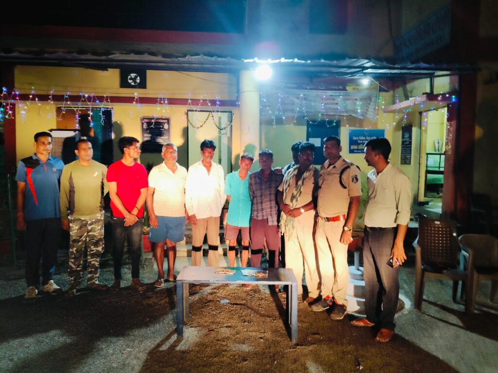 ज्ञात हो कि जिले के पुलिस अधीक्षक डॉ अभिषेक पल्लव द्वारा नशे के रोकथाम तथा सभी प्रकार के अपराधिक गतिविधियों पर अंकुश लगाने समस्त थाना प्रभारियों को निर्देशित किया गया है। जिसके परिपालन में अतिरिक्त पुलिस अधीक्षक विकास कुमार, अतिरिक्त पुलिस अधीक्षक पुष्पेंद्र बघेल, अनुविभागीय अधिकारी संजय तिवारी के मार्गदर्शन में, पोड़ी पुलिस द्वारा ग्राम खड़ावदा कला में सार्वजनिक स्थान पर जुआ खेलते हुए ओम प्रकाश साहू पिता शंभू राम साहू उम्र 35 वर्ष, भगवती साहू पिता मिलाऊ साहू उम्र 45 वर्ष ,होली राम साहू पिता पंचराम साहू उम्र 24 वर्ष, रामनाथ साहू पिता मिलाऊ साहू उम्र 40 वर्ष, कलेज श्रीवास पिता अनुज श्रीवास उम्र 42 वर्ष, श्याम प्रसाद यादव पिता गिरधारी यादव उम्र 32 वर्ष,सभी निवासी खदौड़ा कला शंकर साहू पिता जवाहरलाल साहू उम्र 48 वर्ष ग्राम पांडातराई जो गांव के रामनाथ साहू के घर के सामने हार जीत का दाव लगाकर जुआ खेल रहे थे जिन पर रेड कार्रवाई कर उक्त आरोपियों कब्जे से 52 पत्ती ताश की गड्डी एवम् 8300 रुपए नगद को जप्त किया जाकर छत्तीसगढ़ जुआ प्रतिषेध अधिनियम के तहत कार्रवाई की गई है।