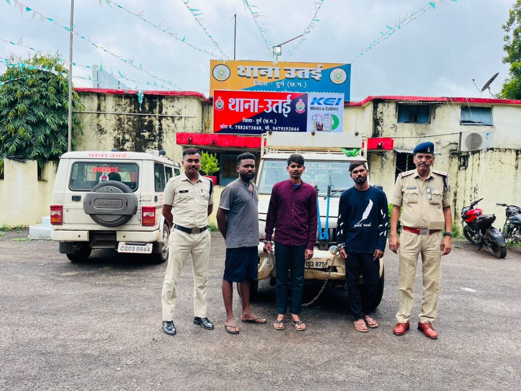 गोविंदा चौहान । भिलाई । उतई थाना अंतर्गत बिजली तारों को चोरी करने वाले 3 आरोपियो को पुलिस ने गिरफ्तार किया है। आरोपियों ने खोपली डीहपार से धौराभाठा रोड के बीच लगे करीब डेढ़ कि.मी. के तार की चोरी की।